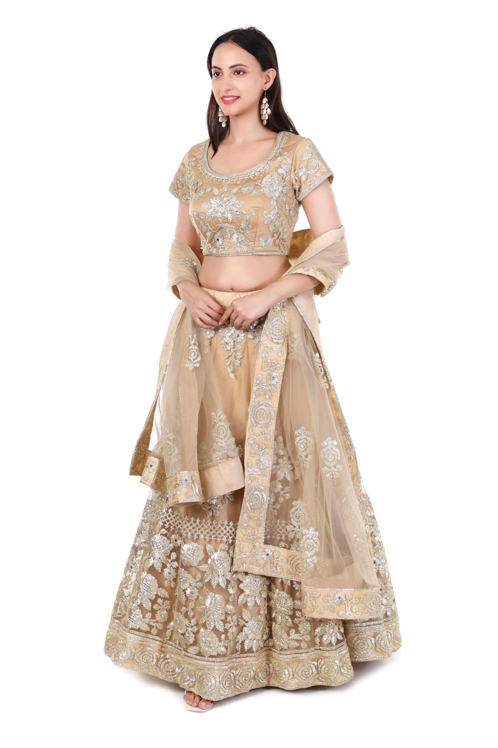 Golden Lehenga for Wedding – Premium Net Embroidered Set