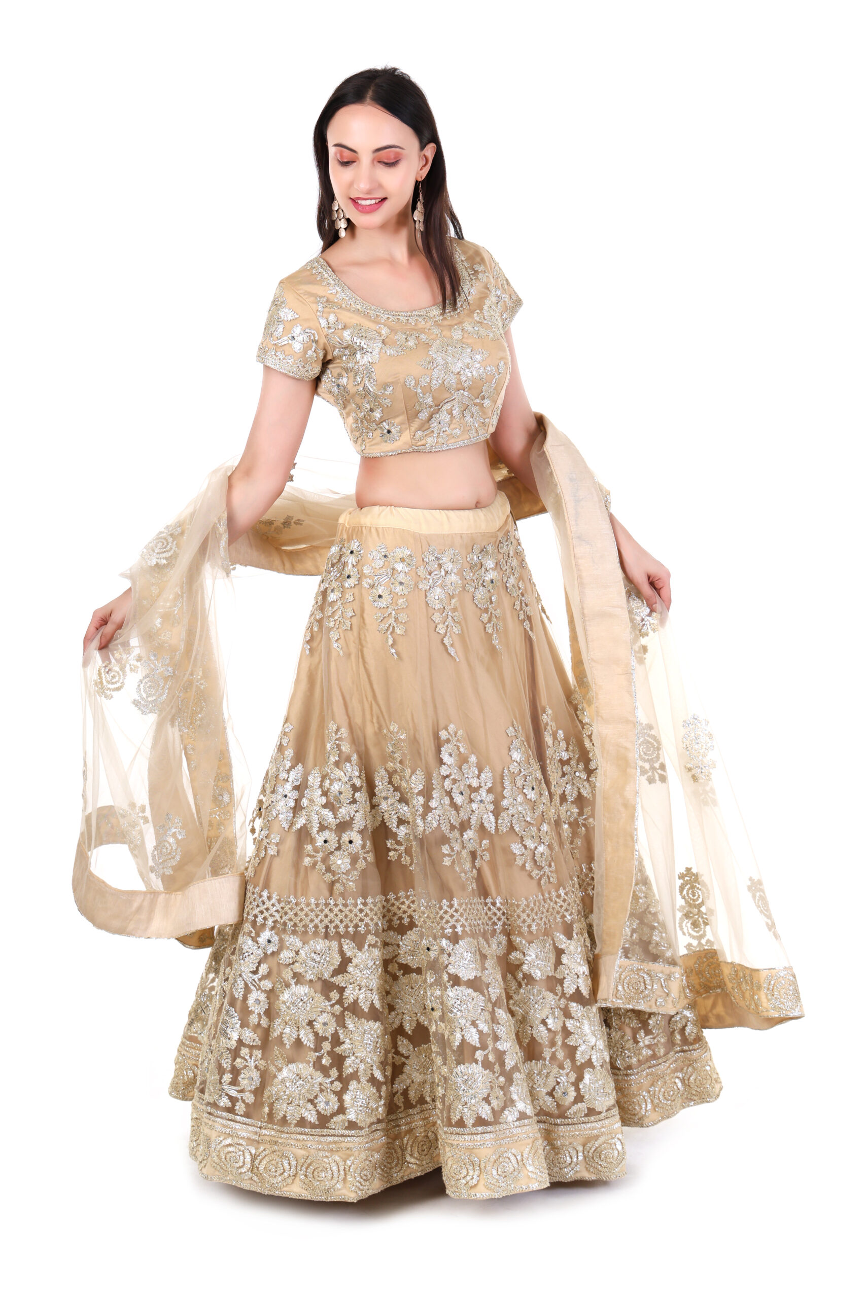 Step into timeless elegance with our golden lehenga for wedding, crafted with utmost perfection and grace. Designed in luxurious premium net fabric, this stunning lehenga set redefines ethnic fashion for today’s modern woman while preserving the richness of tradition. A true masterpiece, this lehenga blends delicate embroidery with a flattering silhouette, making it an ideal choice for weddings, receptions, festivals, and traditional family gatherings.